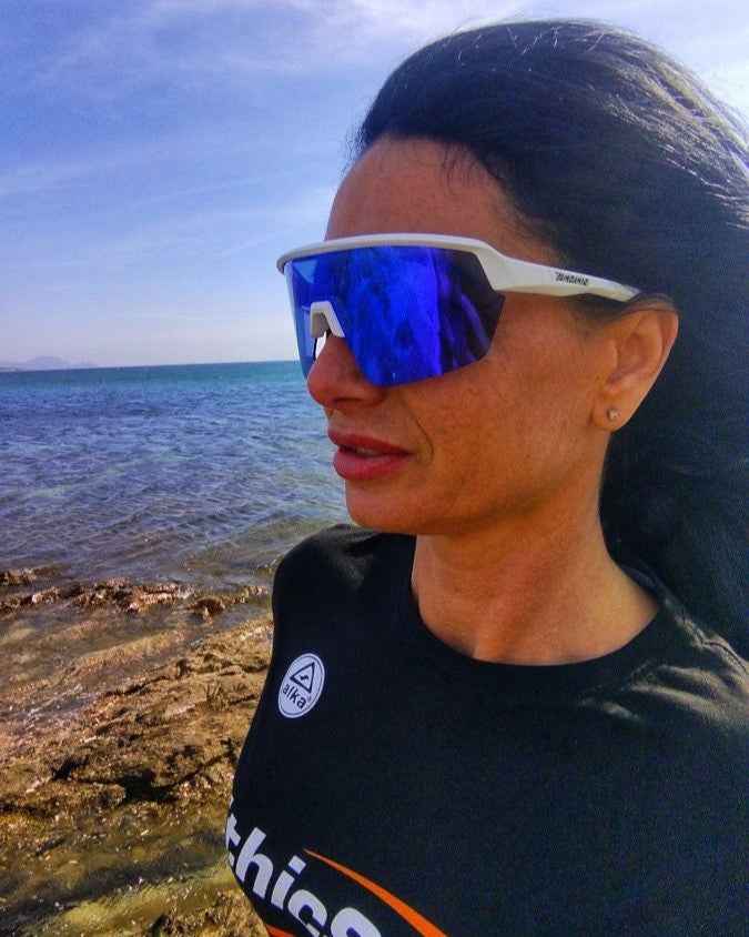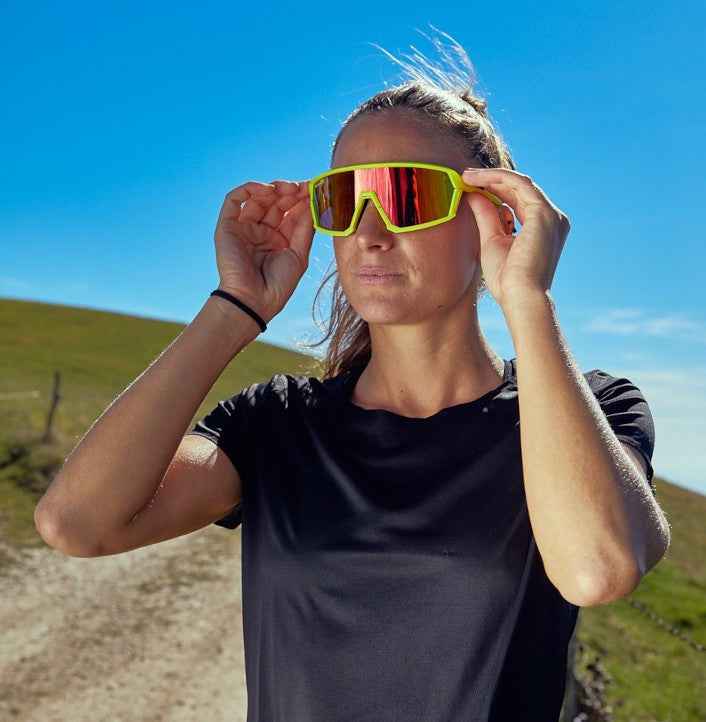 - Trail Running: The GRAVEL model is an excellent choice for trail runners, from amateurs to professionals. Its wide frame provides maximum protection against leaves, branches, dirt, insects, and other debris. Despite its robust design, these glasses weigh only 30 grams. The DMIRROR mirrored category 3 lens offers strong light protection, even during prolonged use, and is unbreakable, ensuring maximum safety against impacts.