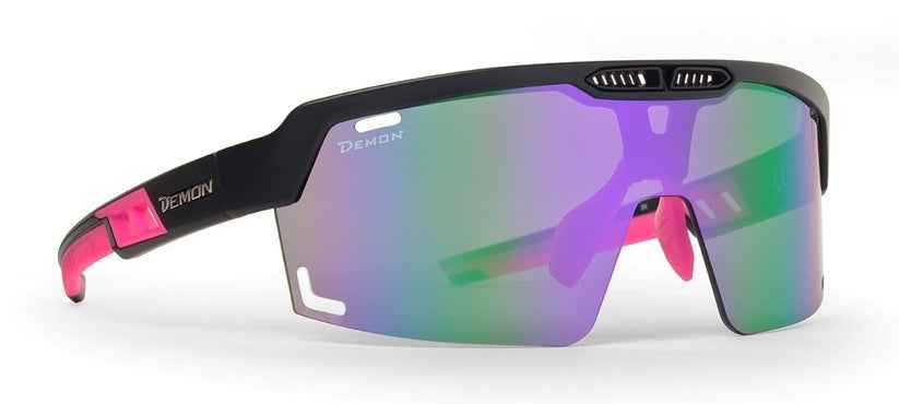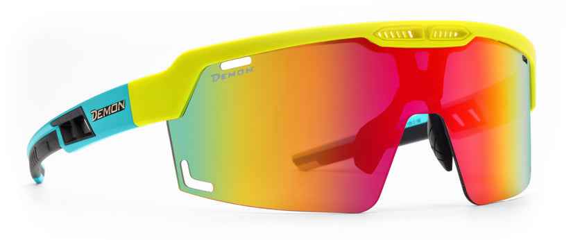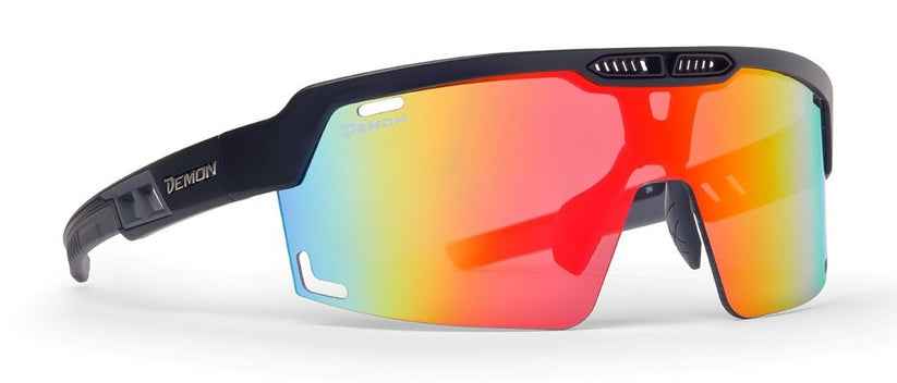 SPEED VENT is the latest eyewear offering from DEMON, designed for both BDC (Bicycle Downhill) and MTB (Mountain Bike) disciplines. These glasses feature a multi-layer mirrored single lens that provides maximum eye protection and an aggressive design. A standout feature of this lens is its high contrast of natural colors, offering benefits similar to those of polarized lenses while avoiding any visual hindrance when reading LED screens.